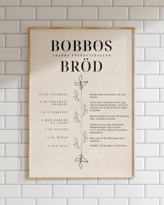 We match your recipe with a suitable illustration. This means that when you order a poster with your best bread recipe, you will receive an illustration of a bread that looks exactly like yours. A preview will be sent to your email before your poster is printed.